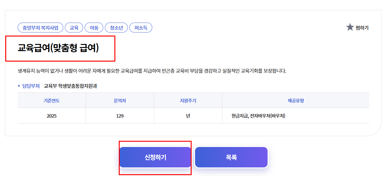 | 신청방법 | 복지로, 교육비 원클릭, 주민센터 |