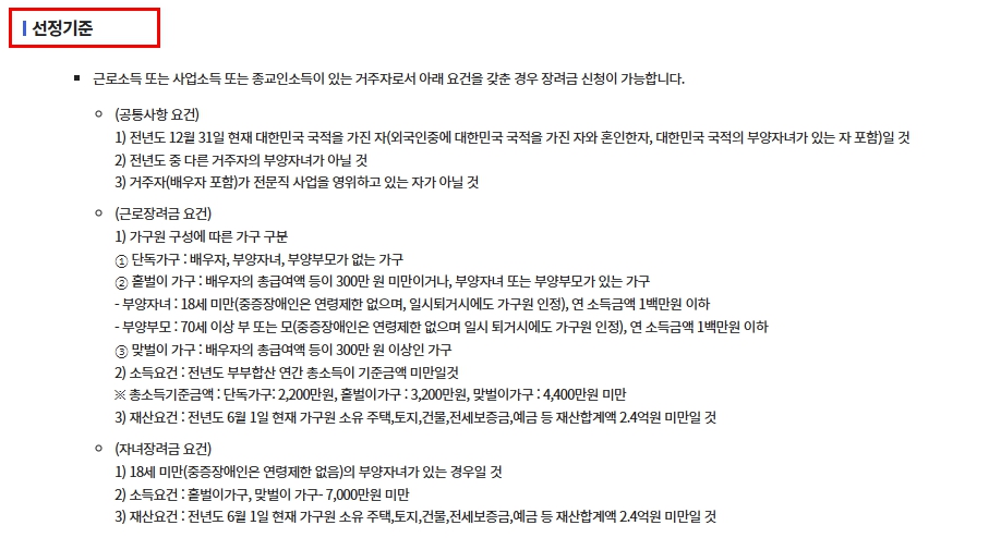 신청자격 기준은 해마다 변경되므로, 작년에 받았다고 올해도 된다는 보장은 없습니다.