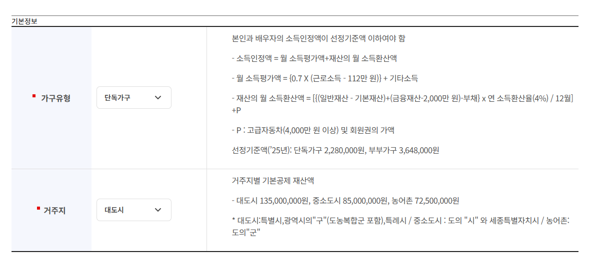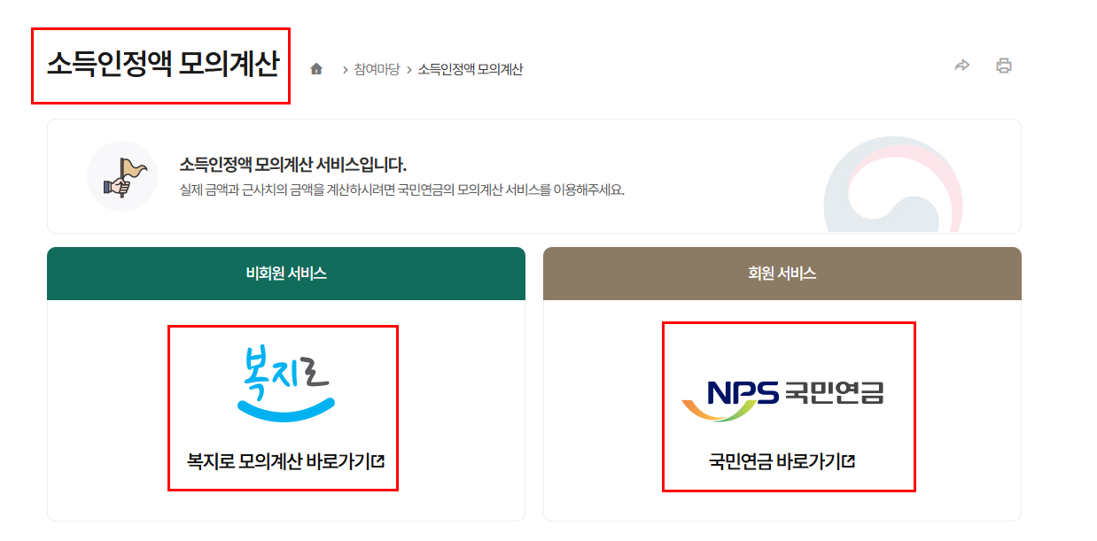 - 결과 확인: 예상 소득인정액, 수급 가능 여부, 예상 수령액 확인 가능