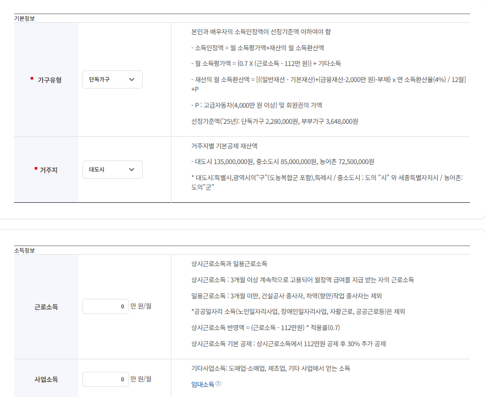 - 수급 여부는 신청 후 심사 결과로 최종 결정되며, 모의계산 필수