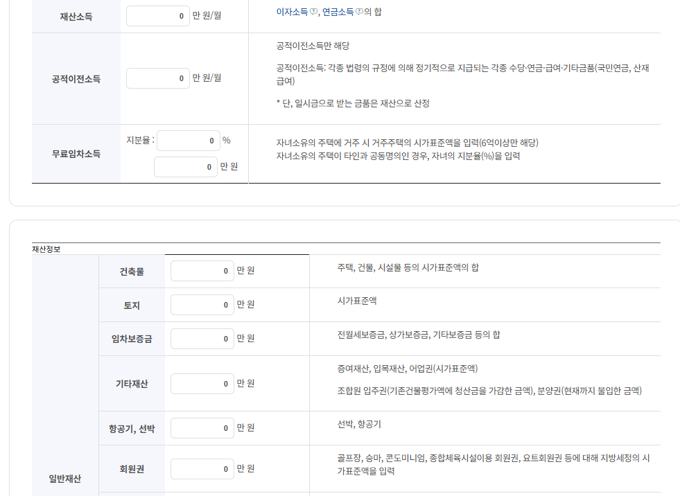 - 예금·자동차·부동산 등은 일정 기준에 따라 환산