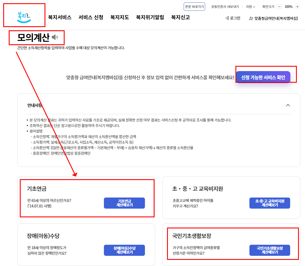 📌 복지로 모의계산 및 온라인 신청 가능