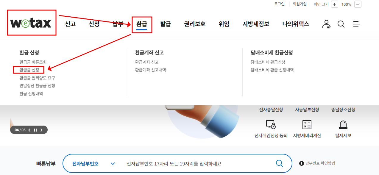 • [지방세 환급금 조회] 메뉴 클릭