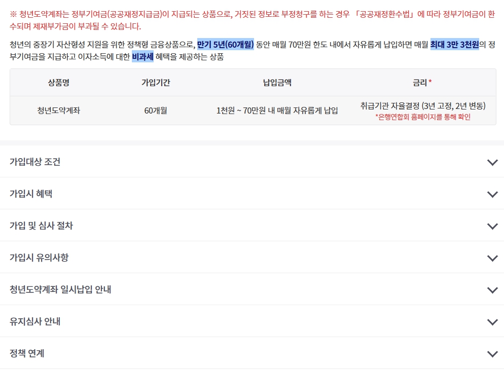 - 신청: 취급은행 앱 or 청년도약계좌 공식 홈페이지