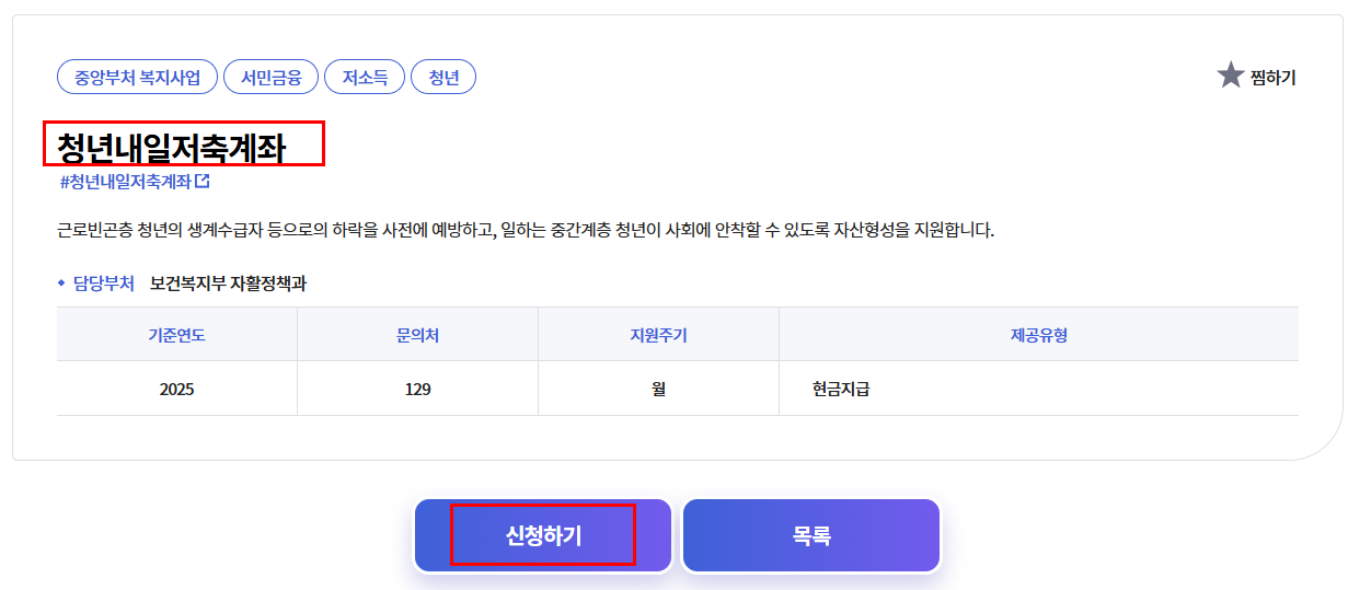 - ‘청년 내일저축계좌’ 검색 후 온라인 신청