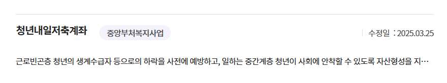 - ‘청년 내일저축계좌’ 검색 후 온라인 신청