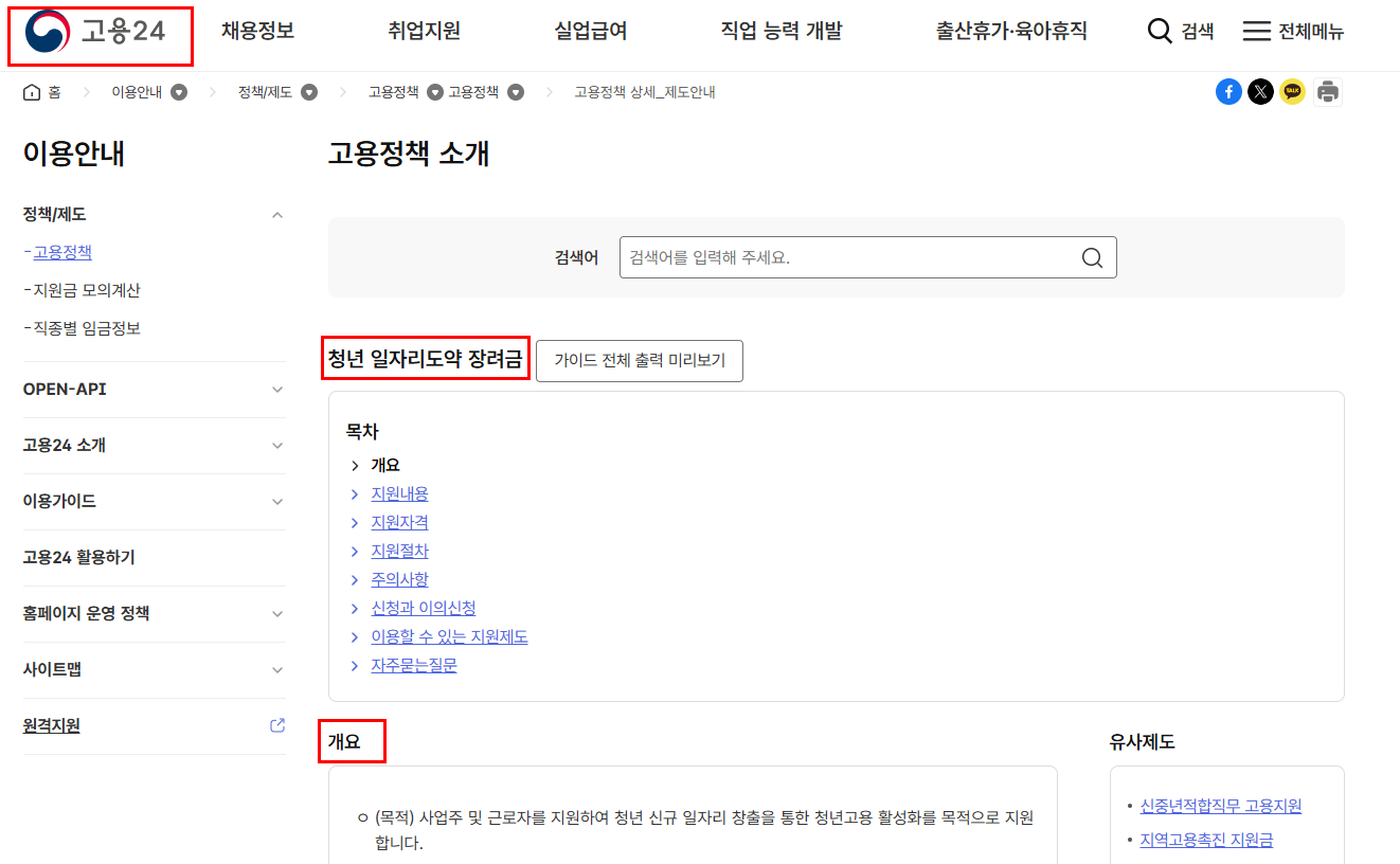 고용24 청년 일자리 도약 장려금 바로가기