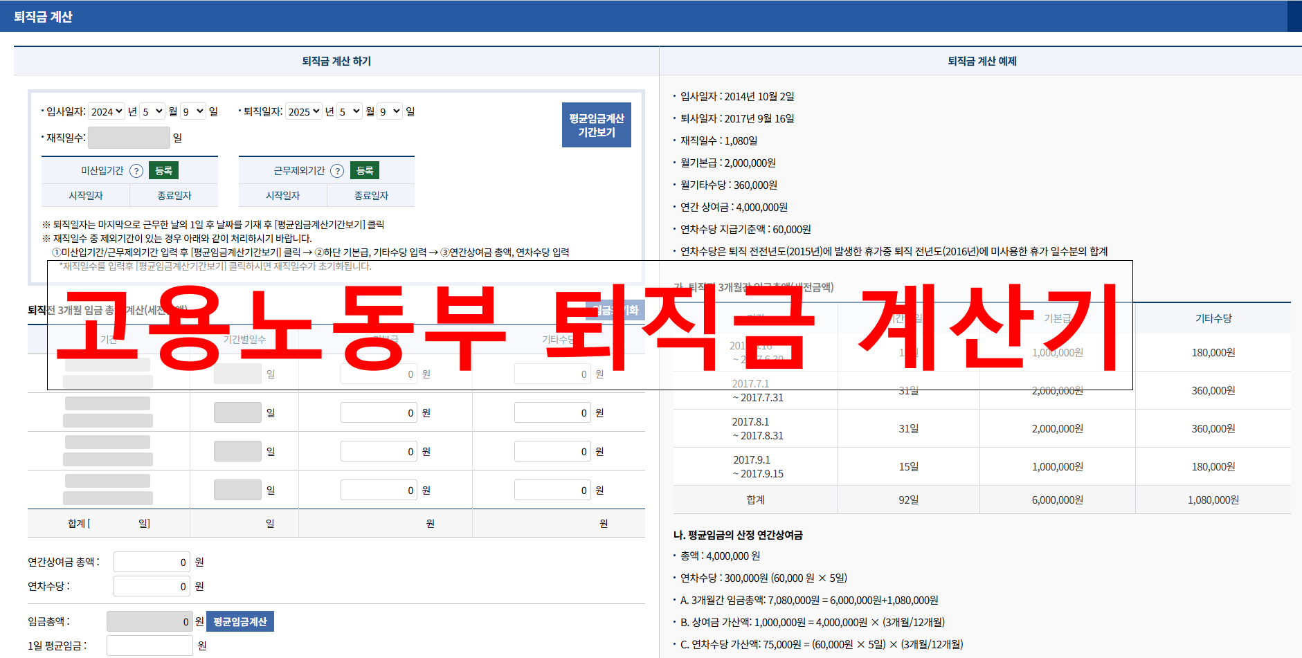 2. 고용노동부 퇴직금 세금 자동계산기