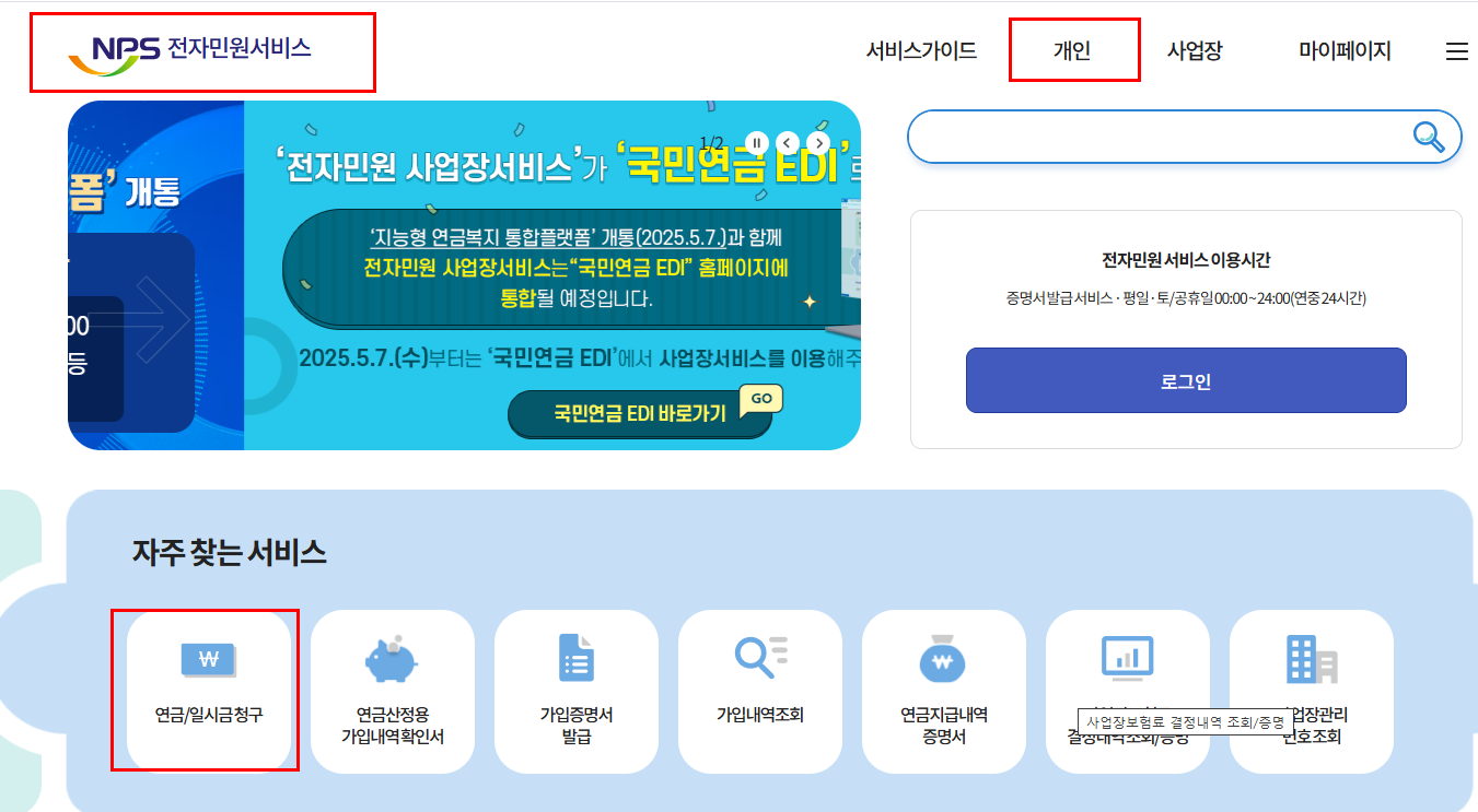 👉 국민연금 수령 신청하기