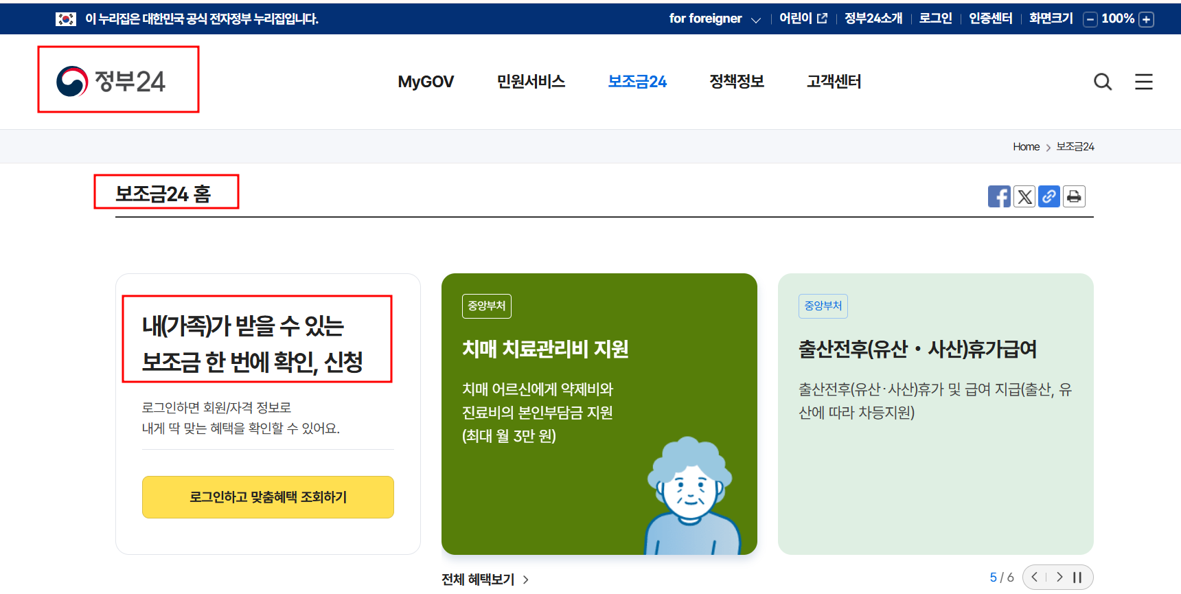 - 보조금24, 복지로에서 손쉽게 조회 가능